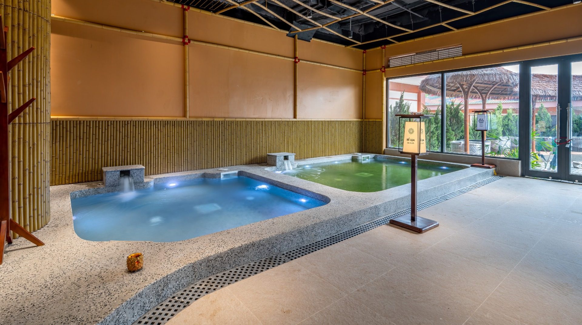 – Tắm bể khoáng Onsen tại khu bể bơi